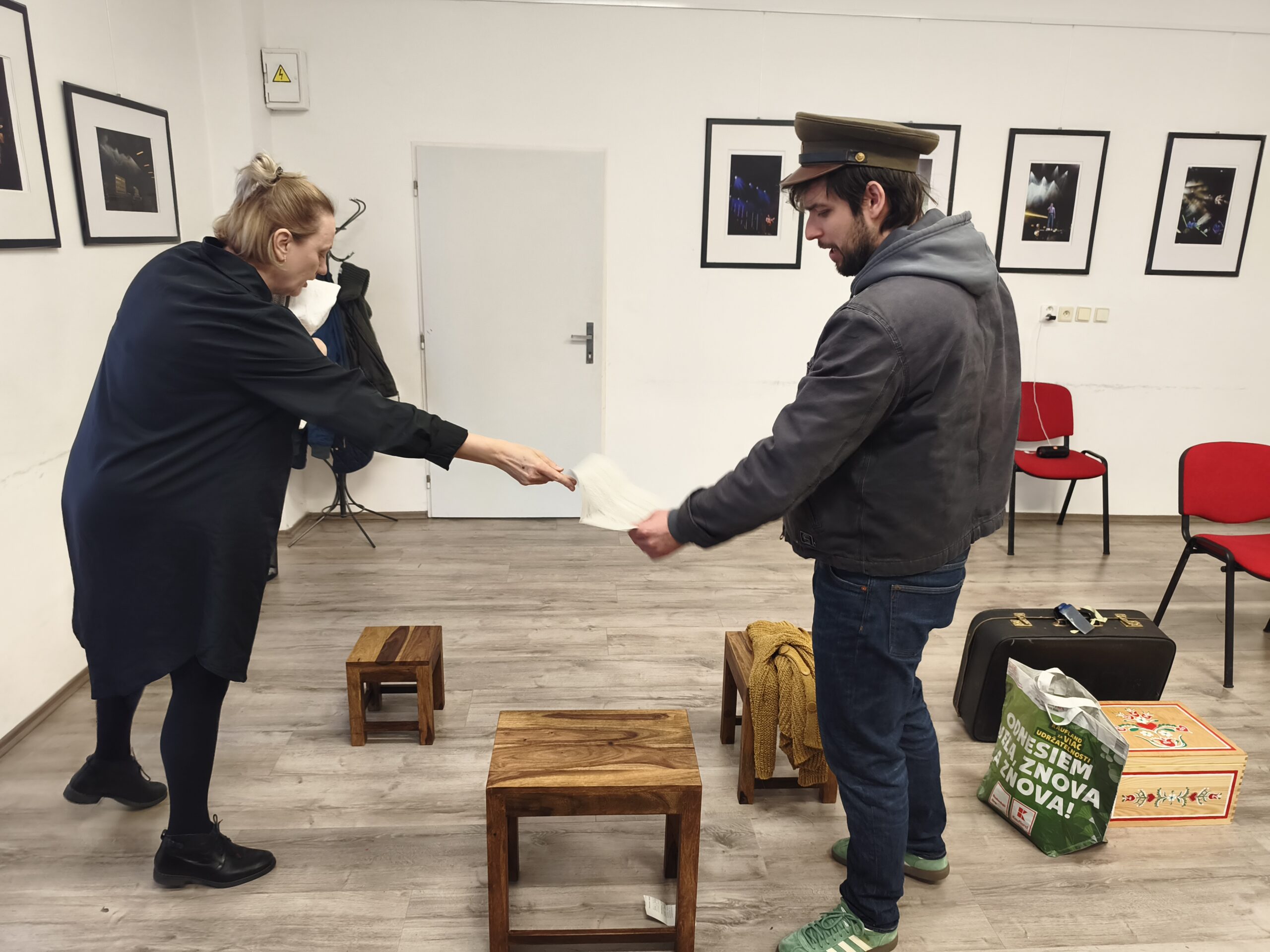 Előadásunk a csehszlovákiai magyar közösség egyik legfájóbb emlékét, a Csehországba való deportálások és a reszlovakizáció történelmi problémáját hozza közelebb a mai fiatalokhoz. A színházi játék kerete egy fiktív oral history (saját emlékezet) múzeum kiállításának tesztelése: a játékokon részt vevő iskolai osztályok diák-kurátorokként vannak jelen. A kiállítás részét képezi a megsimerkedés egy kitalált (de sokak számára valós) történettel, melyet színházi előadásként látnak a fiatalok. Az előadás nem csak múltbeli eseményeket idéz fel, hanem arra is ösztönzi a résztvevőket, hogy személyesebben és érzékenyebben gondolkodjanak identitásról, kirekesztésről és történelmi felelősségről. A történet egy családi konfliktusból indul: a tét első pillantásra egy omladozó vidéki ház és a benne élő nyugdíjas falusi tanárnő sorsa, csakhogy emögött elhallgatott traumák, örökölt félelmek, megválaszolatlan kérdések lapulnak. Mint a megsárgult iratok egy bőrönd mélyén…